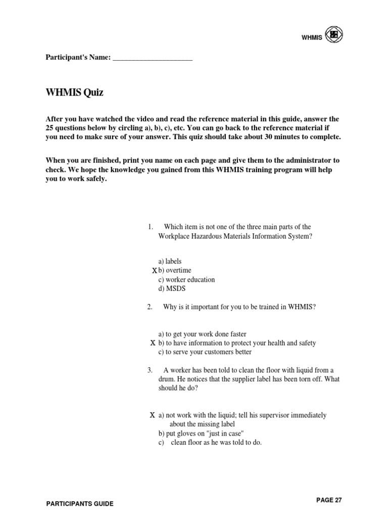 What is WHMIS 2015? Six Things to Know | Worksite Safety What's new with WHMIS 2015 supplier labels? WHMIS 2015 supplier labels have standardized label elements. Each hazard class and category has a prescribed signal word, hazard statement, pictograms, and precautionary statements. Supplier labels are still required in both English and French. What are the new WHMIS 2015 Safety Data Sheets (SDS) like? PDF WHMIS 2015: Review Quiz Answer Key - OVMA 11. What is a precautionary statement? Standardized phrases that describe measures to be taken to minimize or prevent adverse effects resulting from exposure to a hazardous product or resulting from improper handling or storage of a hazardous product 12. Please complete the following chart: WHMIS Label What Does It Mean? Flammable, Self-Reactive