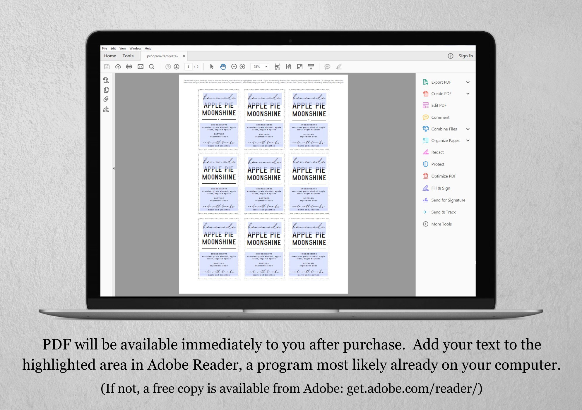 Homemade Apple Pie Moonshine Label Template - Printable Jar Gift Sticker, Personalize Custom ...